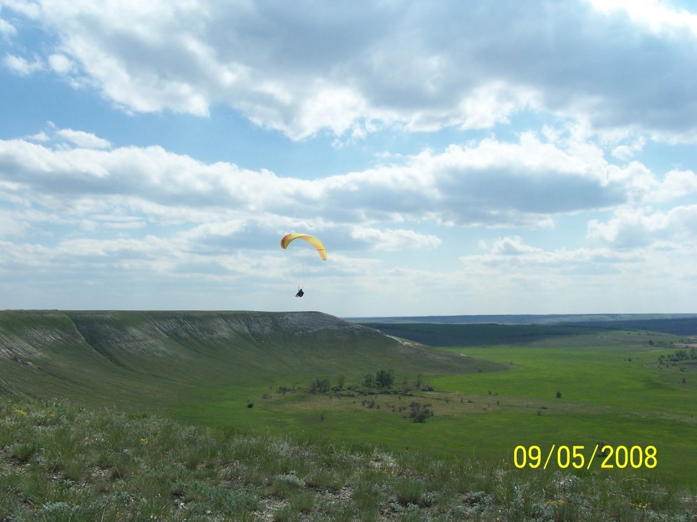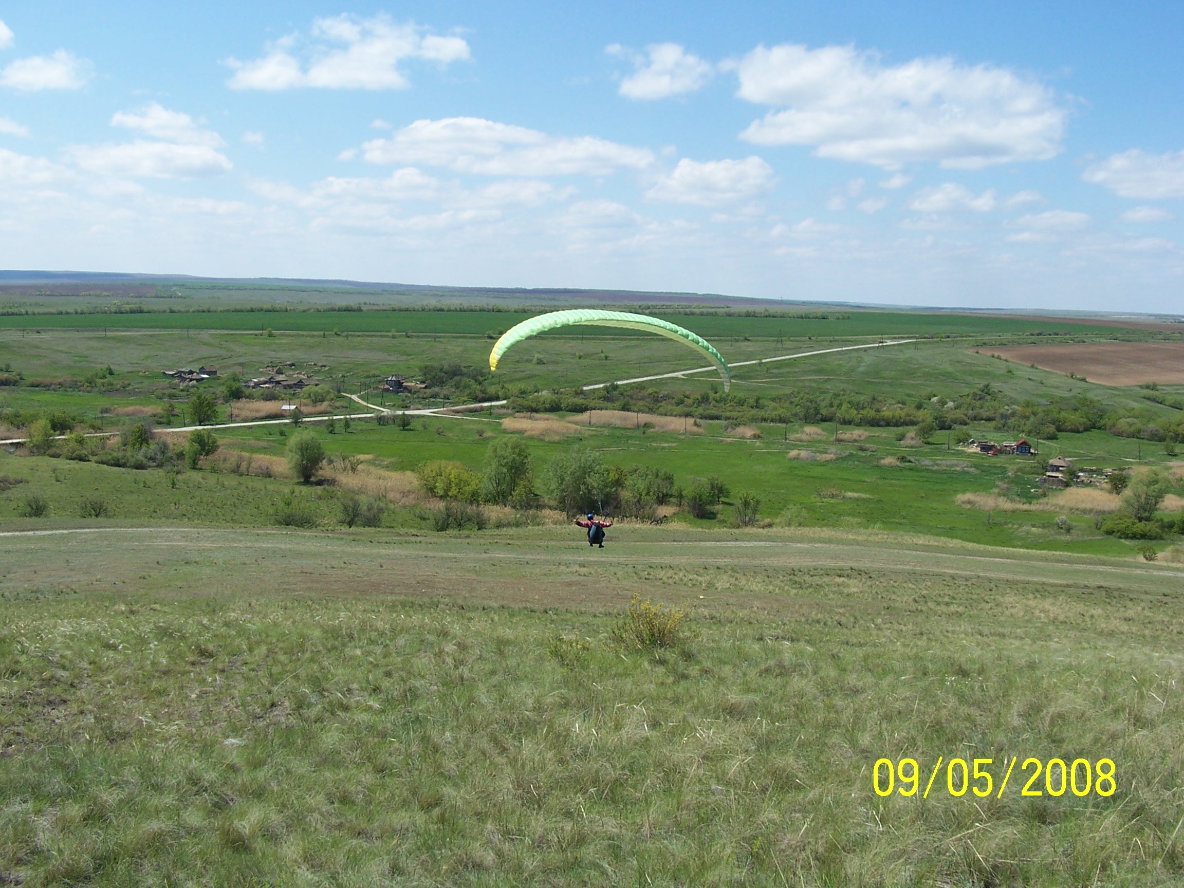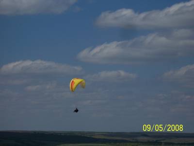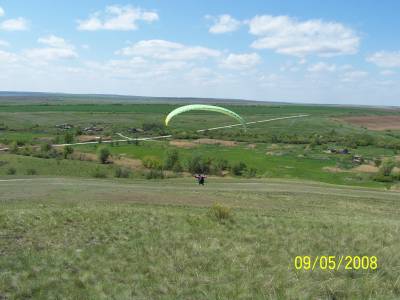 | Погода в этот день была очень необычная. Она в разное время подходила всем - учлетам, динамикам, начинающим пилотам и термическим гуру. все началось со звонка Dokа мне когда я стартанул из Камышина в Романовку - мол там Слава стоит на перегибе и говирит "Do it" и мол "мы никуда не поедем" Деревья вдоль трассы не просто говорили, но кричали - сдуваит. Но так как дорога все равно одна - что в Волгоград, что в Романовку - заеду, посмотрю. На роднике уже было видно, что делать нечего. Думаю, поеду на склон, может кого встречу из таких же лузеров как я. Приехал, там Леша Стайкин укладывает пожитки в свой модернизированный бортовым компьютером пепелац. Славу по всей видимости уже унесло налетающими порывами до 15 м/с. Покурили, сложили параплан Алексея, сходили на склон - do it youself. Тут подъехал Саша Просандеев. Помозговав, обзвонив всех - даже на лебедку хотели рвануть, решили двинуть кто домой, кто на дачу. Почти выехали уже с Романовки. Смотрю Саша остановился и предлагает опробовать очень пологий склон на самом выезде из деревни. Ну не уезжать же с пустыми руками сделав такой путь. И мы поехали на этот пологий пупок. На пупке дуло было поменьше и Саша даже подинамил. А Берман-младший совершил пару подлетов и один полет - с большой натяжкой и такими же косяками, за что был мной нещадно выматерен. Примерно с полудня заметили что ветер сдуваеться и в пол второго решили двинуть на склон. Приезжаем - вуаля. Вот они обещанные 4 метра в секунду. Временами налетает неплохое усиление до 10-12 м/с но в такую термичку это нормально. А сама термичка тут была уже не такая злая. Ну и понеслась. Попрыгали в подвески и стали пытаться во что-то вкручиваться. Саша было пошел на Романовку, но потерял термик и с высоты 270 м ушел на посадку. Я болтался у ложки и набирал по 80-100 метров в от +0,4 до 3. Так пару часов проболтались. Ну и потом разъехались довольные, что день не прошел зря. ПыСы Фотки в понедельник