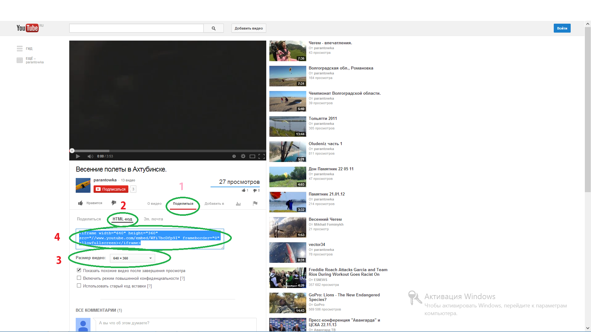 1) Жмакаем на "Поделиться" 2) Затем на "HTML код" 3) Выбираем размер вставляемого окна 4) копируем сцылку 5) вставляем сцылку